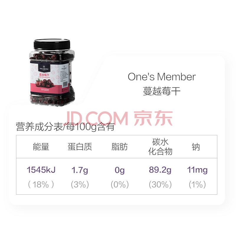 商品相册:1号会员店蔓越莓干 500g 休闲零食品办公室追剧蜜饯果脯水果干第