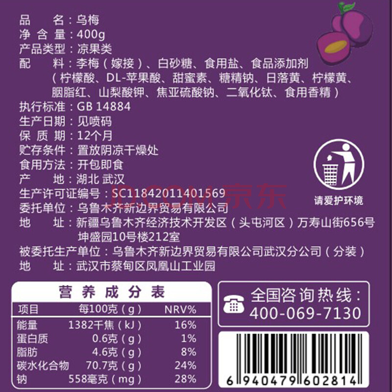 商品相册:新边界 天山原色乌梅干400g 蜜饯果干新疆特产休闲零食小吃梅子肉第
