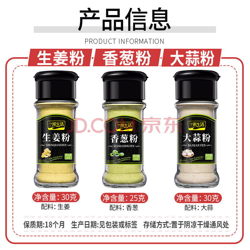 商品相册:一米生活 香葱粉25g+大蒜粉30g+生姜粉30g 腌料烧烤烹饪调味品第
