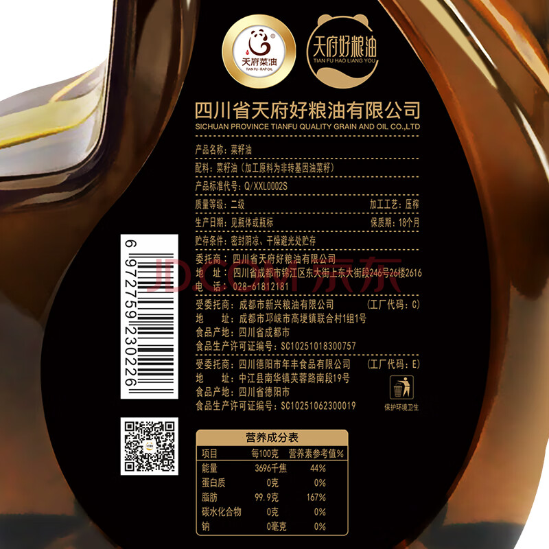 商品相册:天府菜油【保真菜籽油】四川小榨菜籽油小瓶 (四星)1.8L 非转基因 第1张/共7