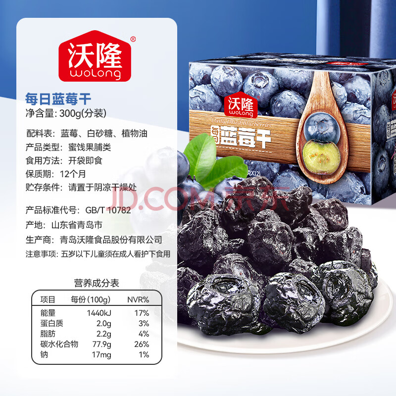 商品相册:沃隆每日蓝莓干300g(25g*12袋)蜜饯水果干果脯烘焙材料休闲零食第
