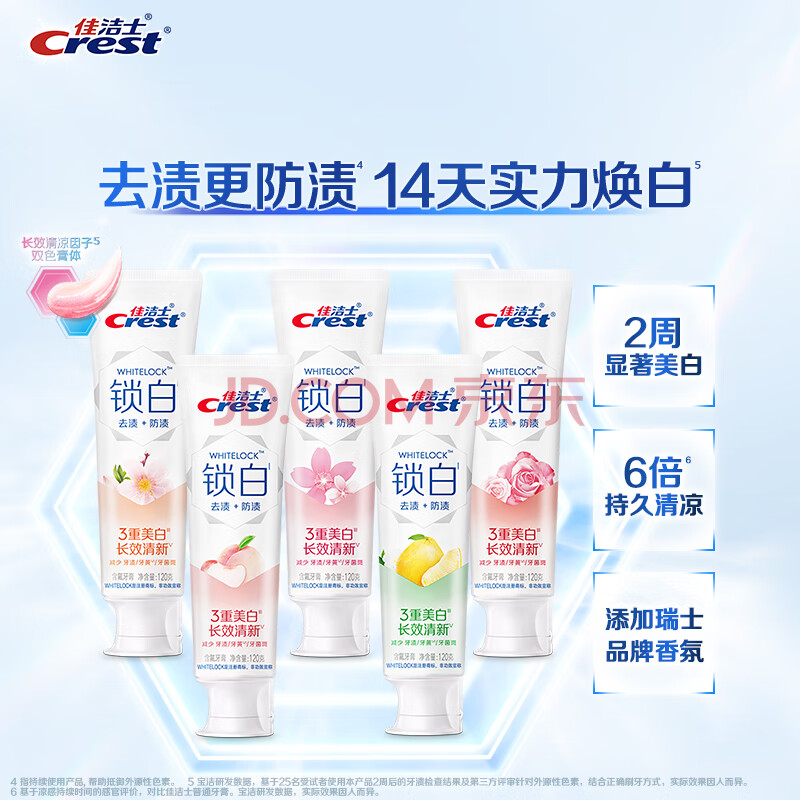商品相册:佳洁士锁白牙膏美白清新口气去渍去牙垢含氟共600g京东自营第