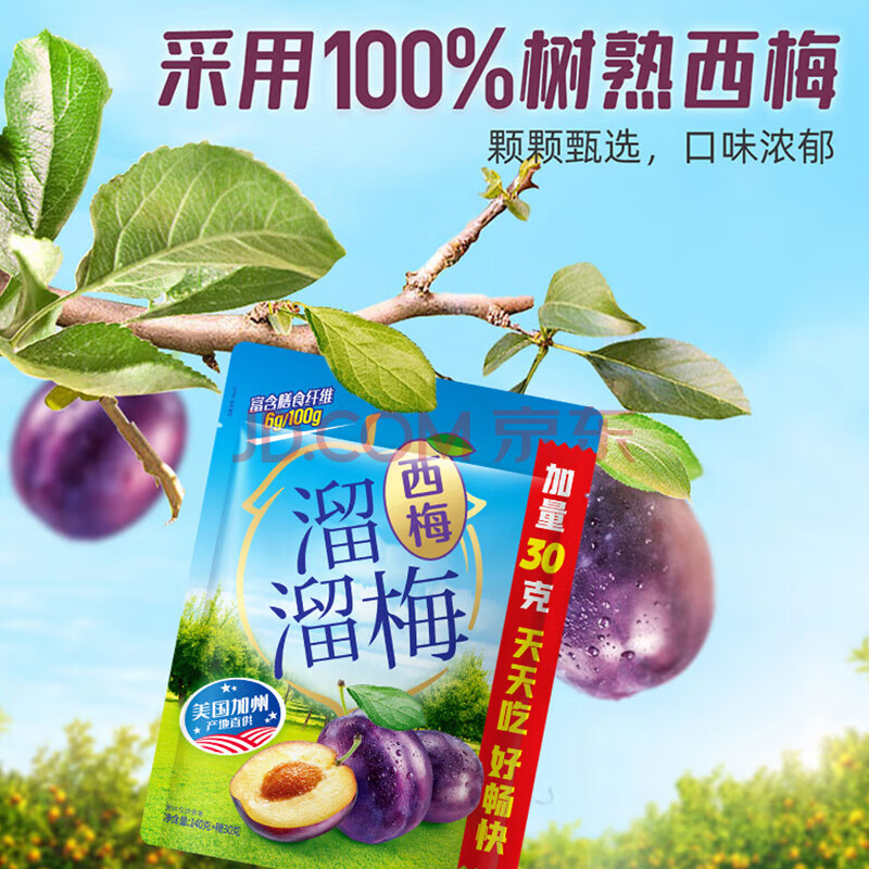 商品相册:溜溜梅西梅 美国加州 产地直供 休闲解馋健康孕妇儿童零食260g/袋第
