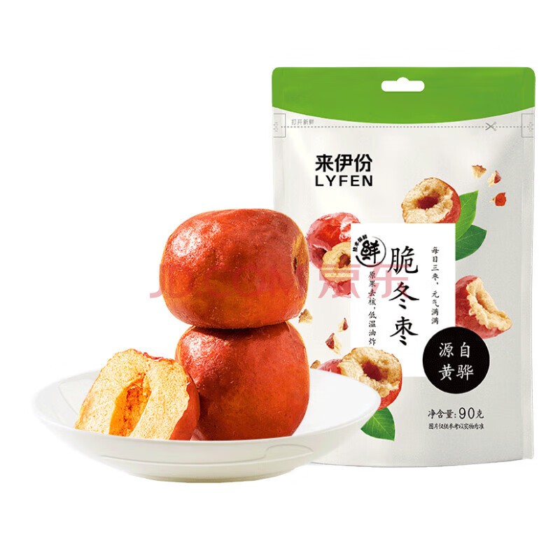 商品相册:来伊份香酥脆冬枣90g 免洗烘干脆枣空心无核红枣 办公室休闲零食第