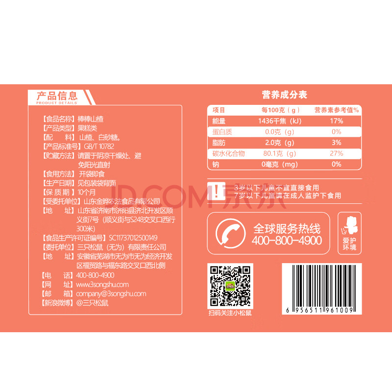 商品相册:三只松鼠棒棒山楂108g约10支蜜饯果干果糕棒棒糖儿童休闲零食独立包装第1张/共7