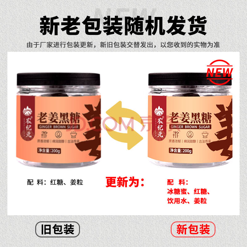 商品相册:农纪元老姜黑糖200g/罐【手工】黑糖产妇月子红糖甘蔗熬制红糖块第
