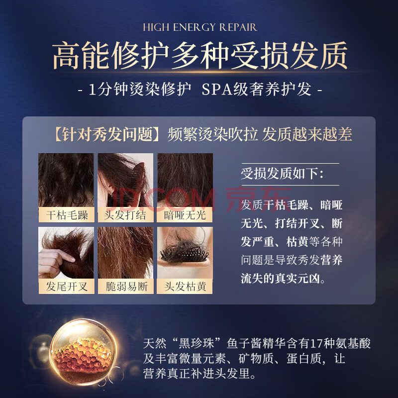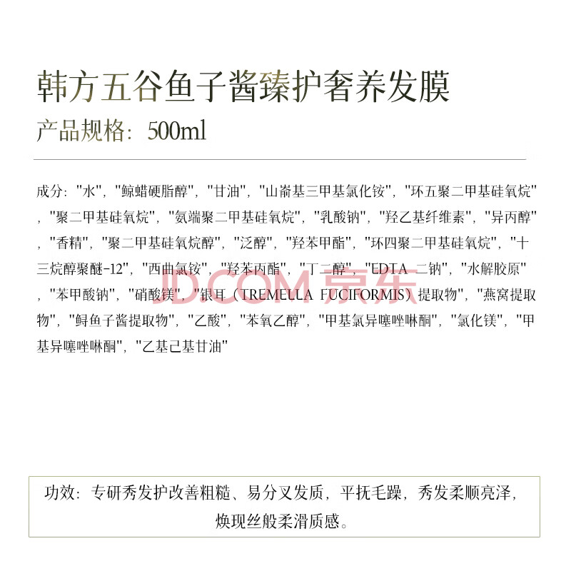 商品相册:韩方五谷鱼子酱发膜蛋白营养修复头发防掉发干枯改善毛躁柔顺光泽护发素第