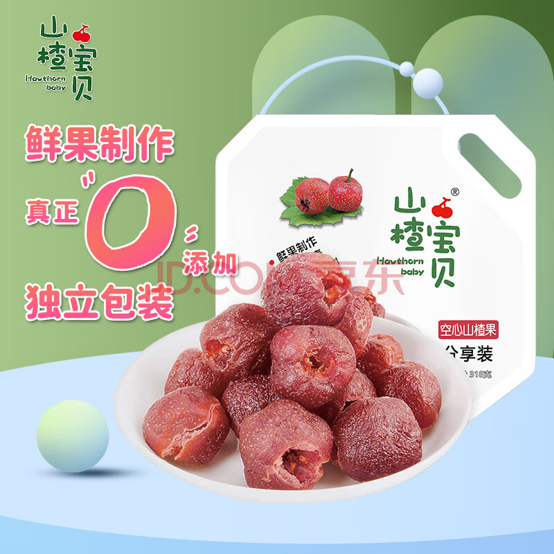 商品相册:山楂宝贝空心山楂果318g/袋 0添加 无核蜜饯果脯儿童休闲零食 不加色素第
