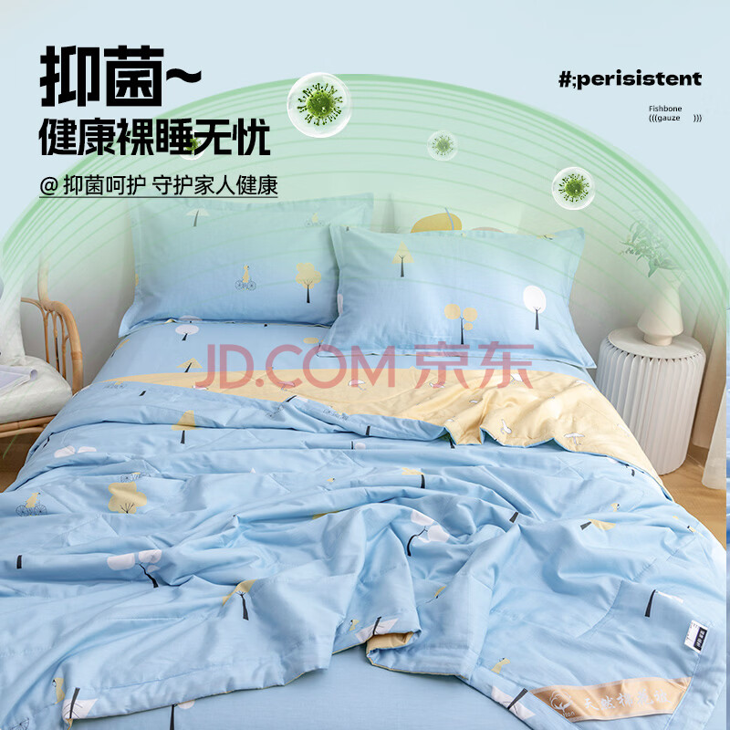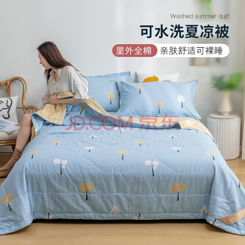 商品相册:云瑾 全棉空调被100%纯棉夏凉被单人凉被夏被薄被子150x200cm美好心情第