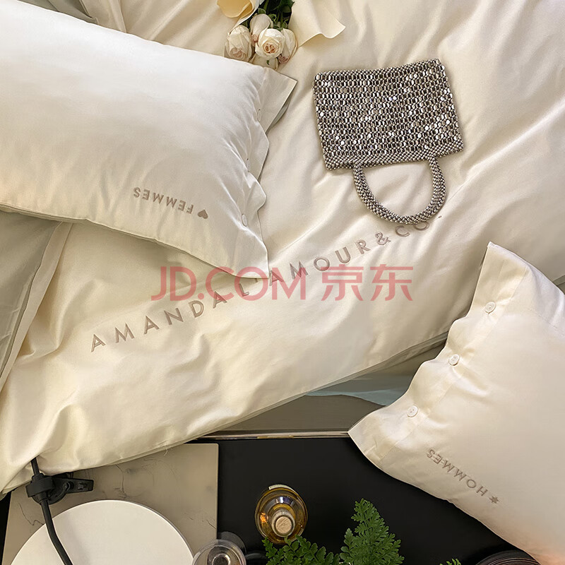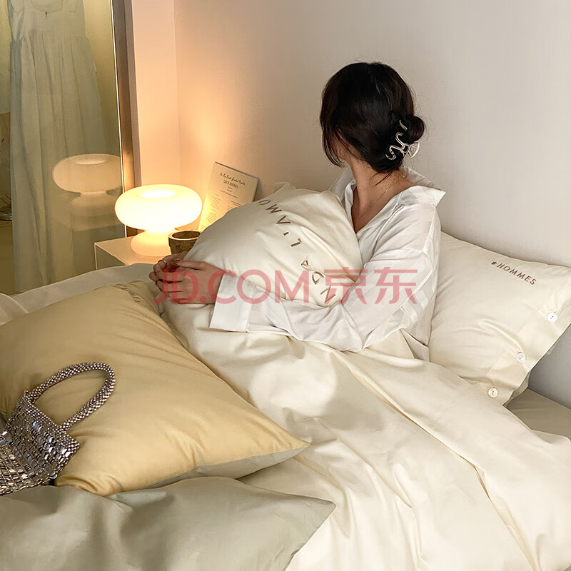 商品相册:Demichel A类120支长绒棉四件套纯棉 法式高端轻奢全棉床上被套床单 1.8/2米床 木果色第