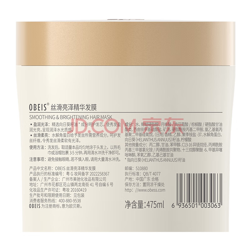 商品相册:欧贝斯丝滑亮泽免蒸发膜水解角蛋白护发素475g修护干枯改善毛躁焗油膏第