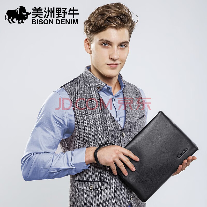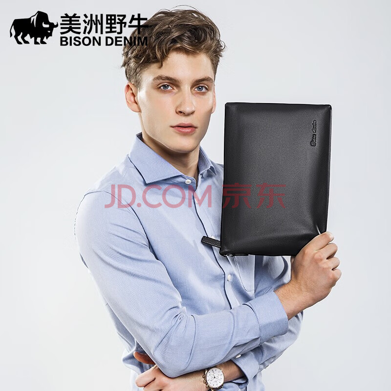 商品相册:美洲野牛男士手包牛皮信封包大容量手拿包生日礼物送男友第1张/共6
