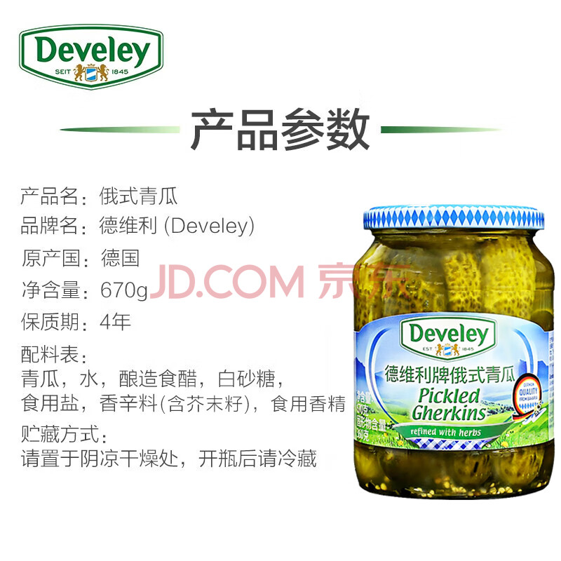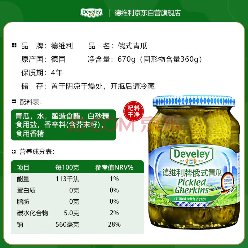 商品相册:德维利 德国进口俄式青瓜670g*12瓶整箱装 俄罗斯风味酸黄瓜罐头餐饮第