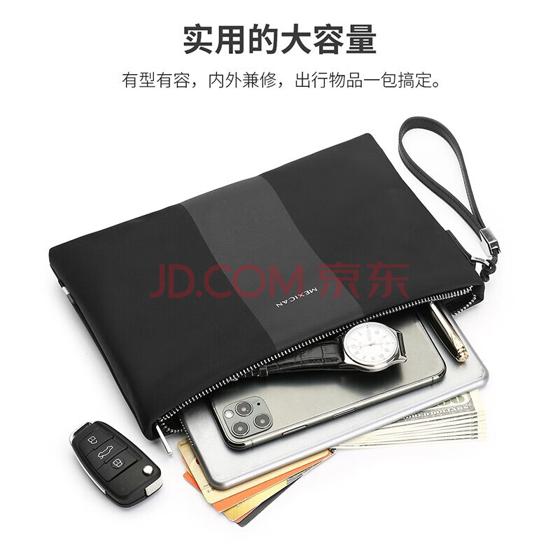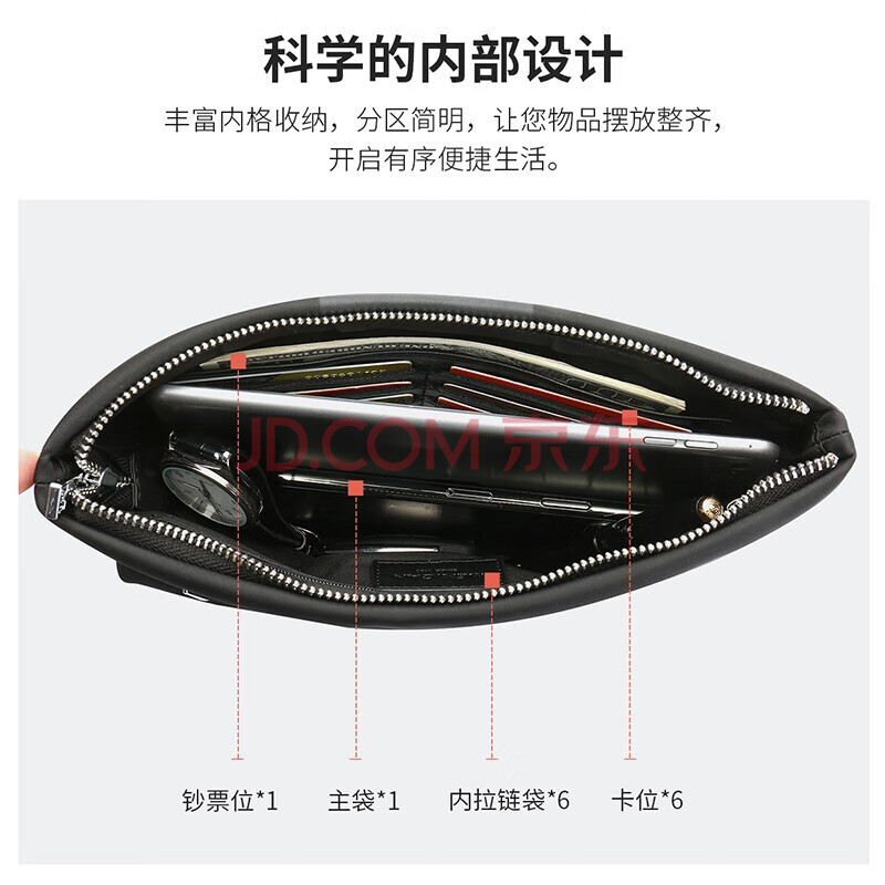 商品相册:稻草人男士手包织物大容量手拿包多卡位拉链信封包柔软手夹钱包手抓包第