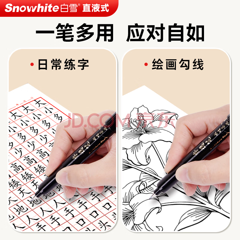 商品相册:白雪(snowhite)【热门商品】直液式秀丽笔小楷勾线笔毛笔入门初学者套装练字大楷中楷绘画美工秀逸笔四款 各一支第