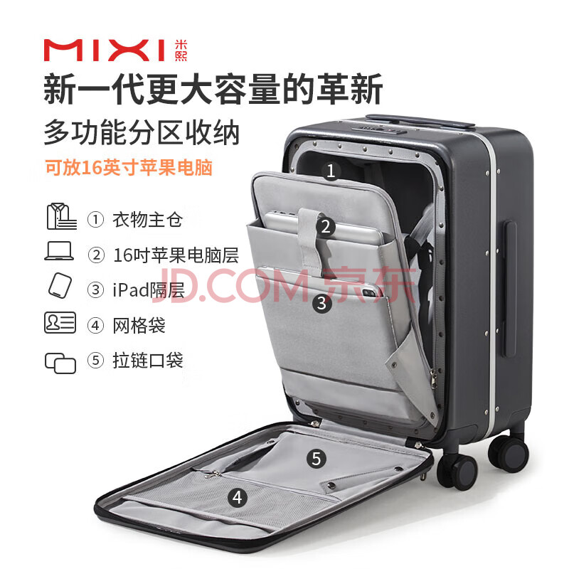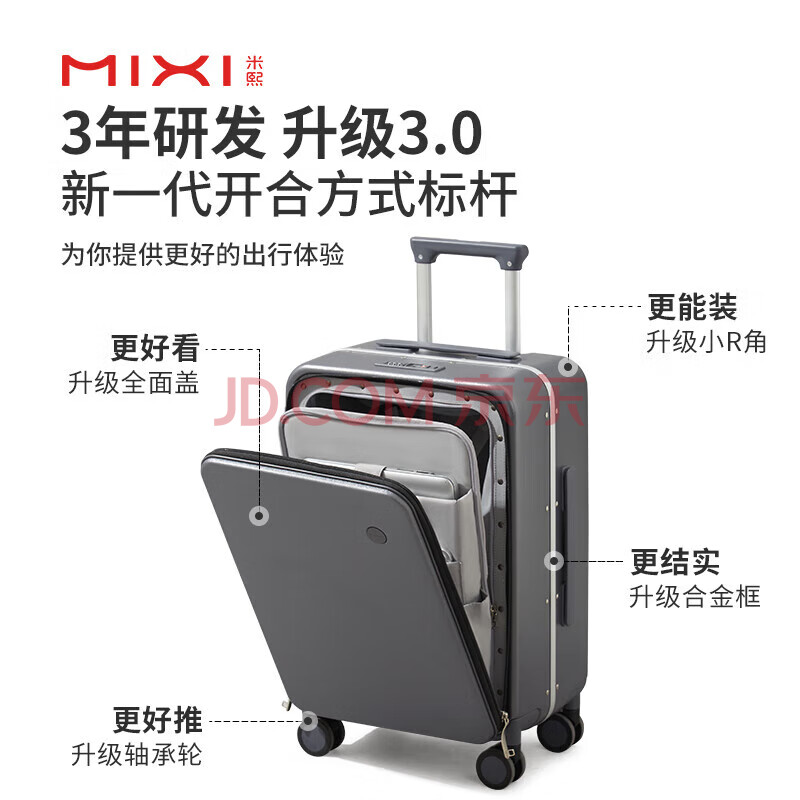商品相册:米熙前开盖拉杆箱子行李箱大容量登机箱铝框箱男旅行箱20英寸矿岩灰60第