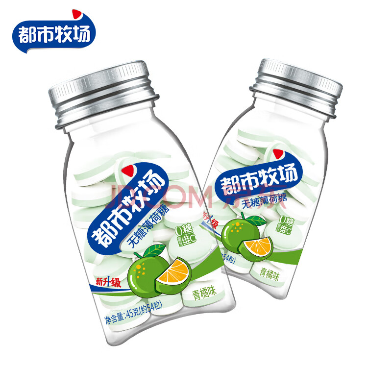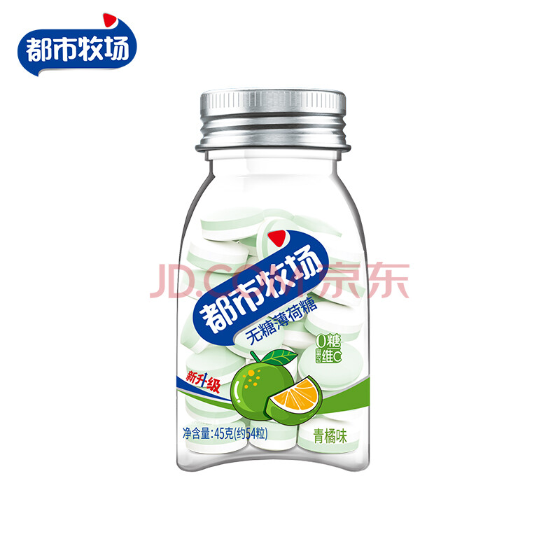 商品相册:都市牧场 无糖薄荷糖 青橘味 45g 维生素C 口香糖 水果味 休闲零食 糖果第