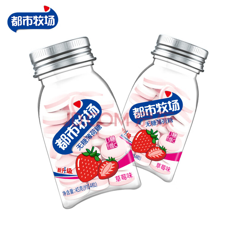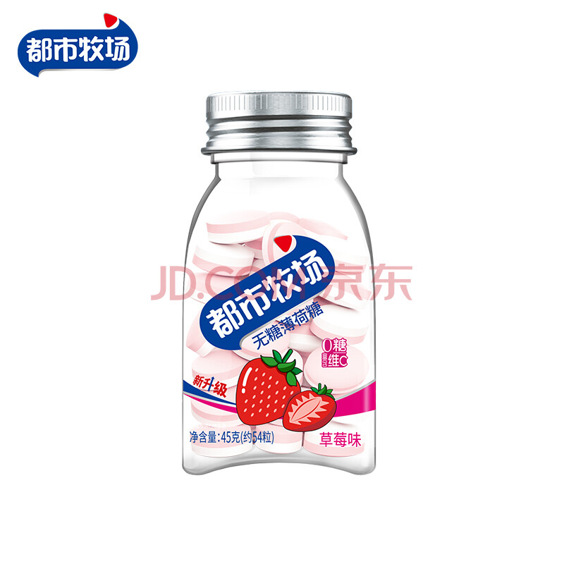 商品相册:都市牧场 无糖薄荷糖 45g 维生素C 草莓味口香糖水果味休闲零食糖果第