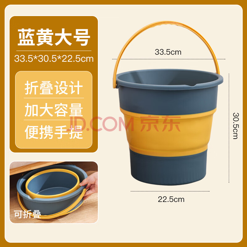 商品相册:妙然水桶17L桶深30cm可折叠洗车钓鱼露营秋游手提大容量泡脚洗衣桶第