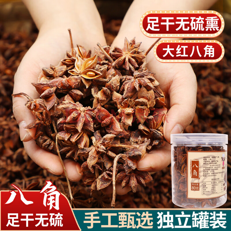 商品相册:爱蜀味八角80g 罐装 广西大红八角香辛料 调味品香料大料无硫熏茴香卤料第