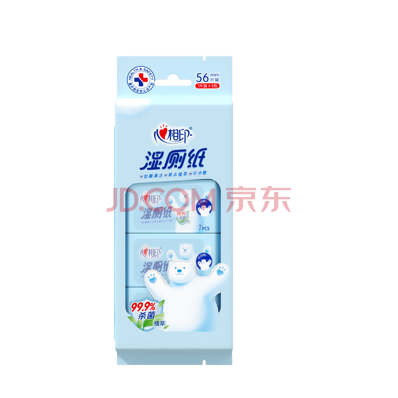 商品相册:心相印超迷你湿厕纸 7片*8包 私处清洁便携装 湿巾 母婴可用包装随机第