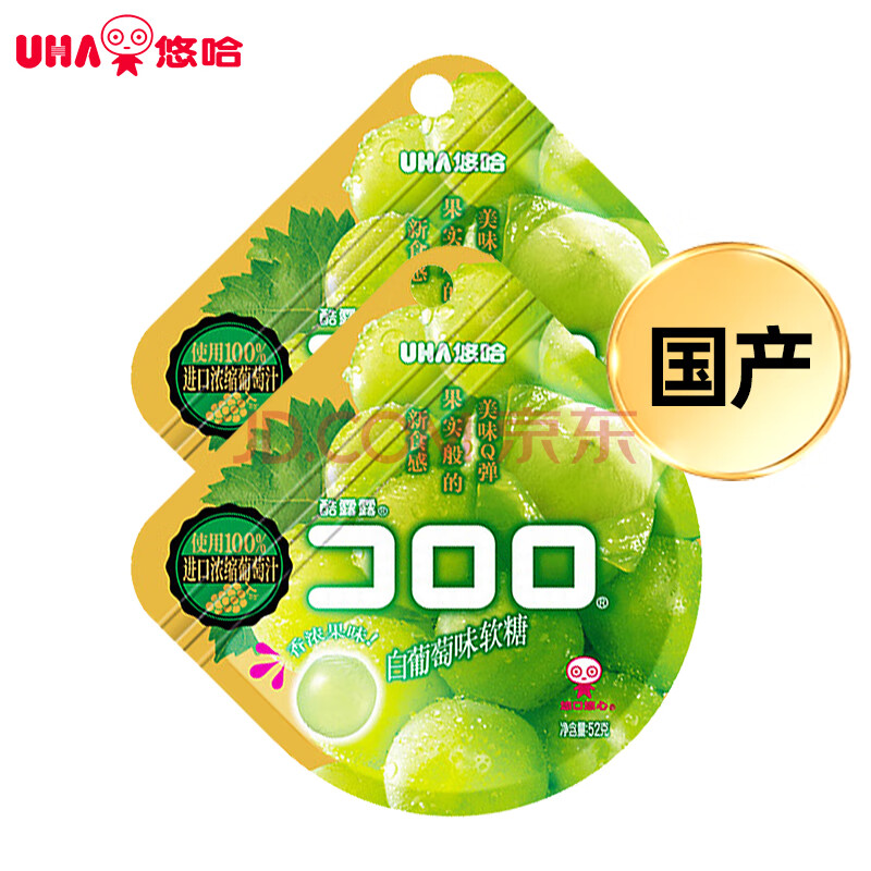 商品相册:悠哈 酷露露果汁软糖 52g*2包 白葡萄味 qq糖 爆浆软糖 休闲零食糖果第