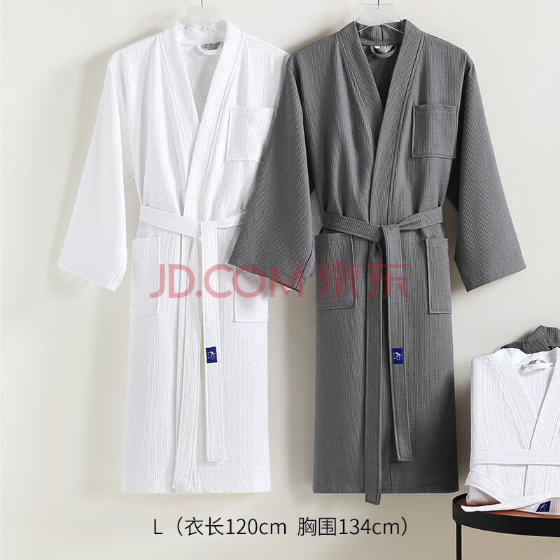 商品相册:竹一百浴袍 纯棉吸水浴衣简约家居汗蒸服华夫格男女睡袍 灰色 L码第