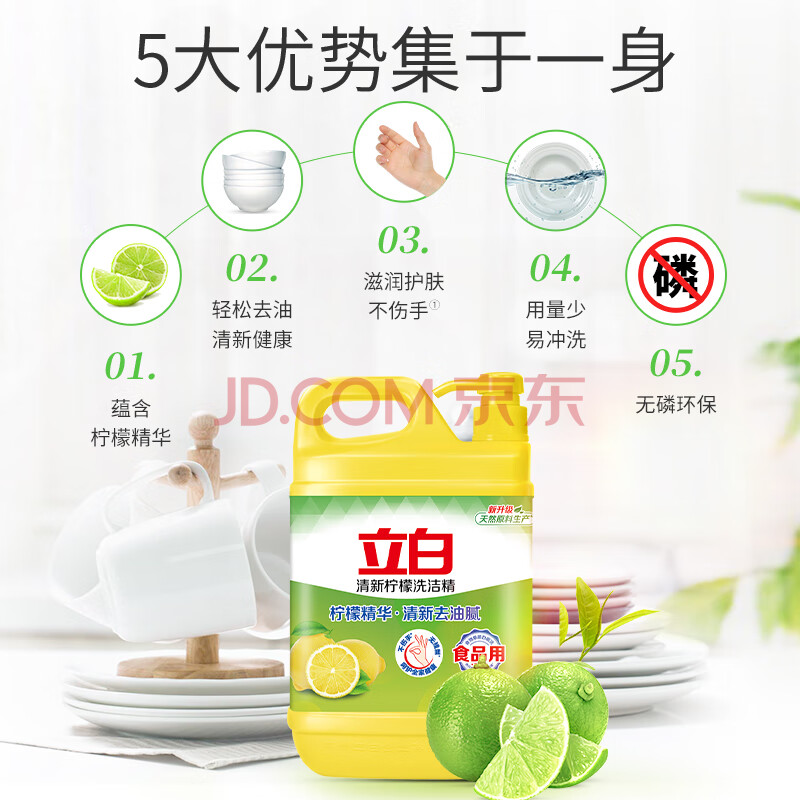 商品相册:立白柠檬洗洁精1kg桶果蔬清洗快速去油洗A类食品用洗涤剂洗碗液洗涤灵第1张/共8
