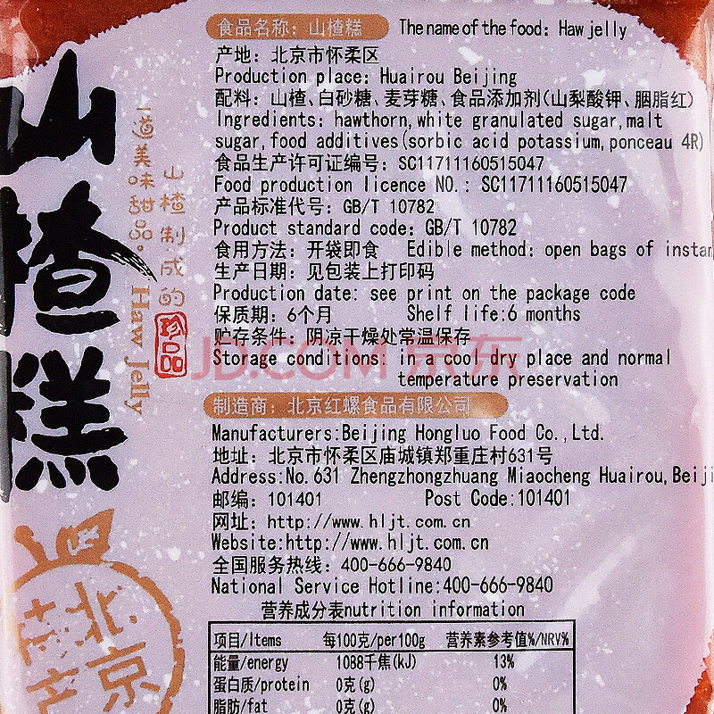 商品相册:红螺老北京特产山楂糕大块400g送礼零食中华老字号第