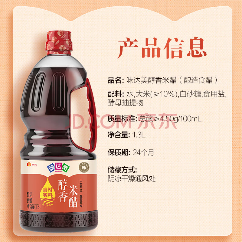 商品相册:味达美醇香米醋(酿造食醋)4.5度1.3L 陈醋蘸拌 欣和出品第