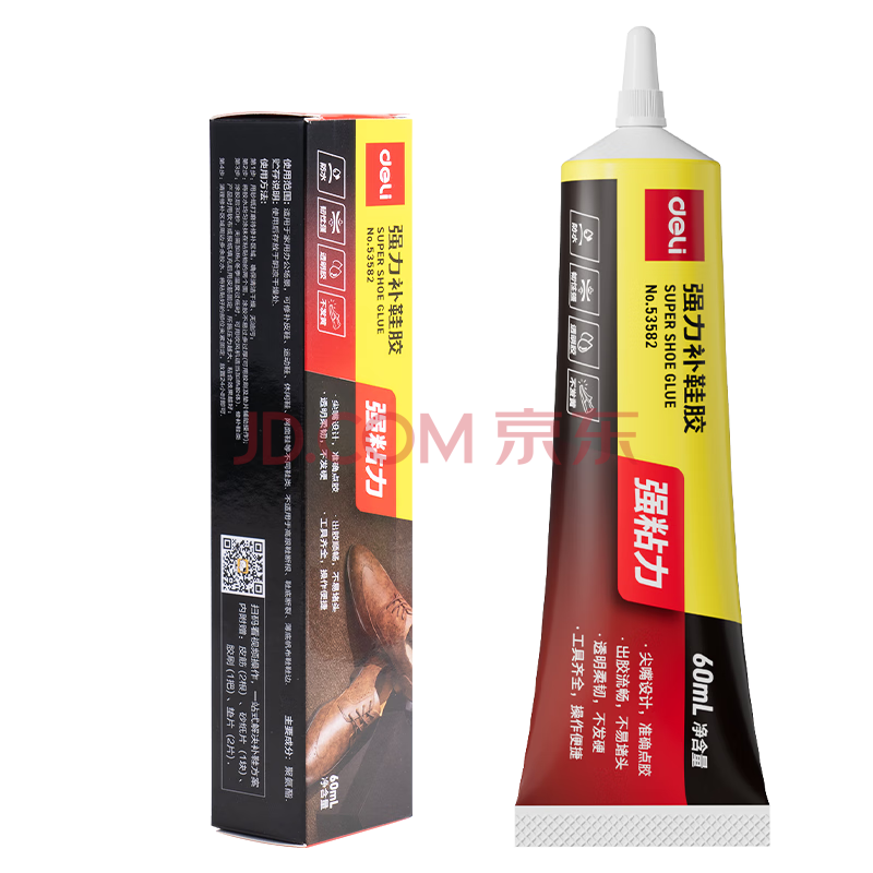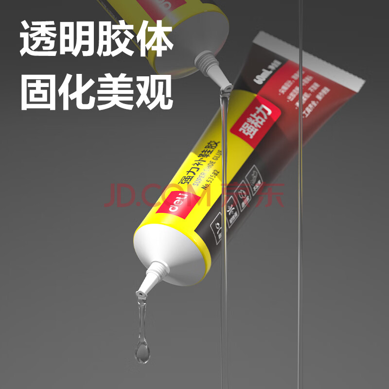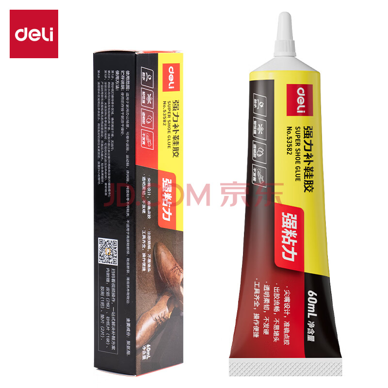 商品相册:得力(deli)补鞋专用强力胶水 防水粘鞋运动鞋皮鞋篮球鞋脱胶 软性树脂不发硬万能鞋胶 60ml/支 53582第