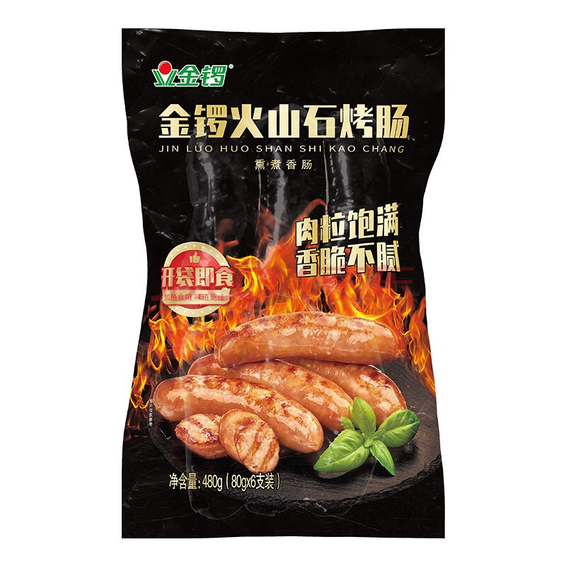 商品相册:金锣火腿肠速食出游款火山石烤肠80g*6支装露营烧烤肠第1张/共8