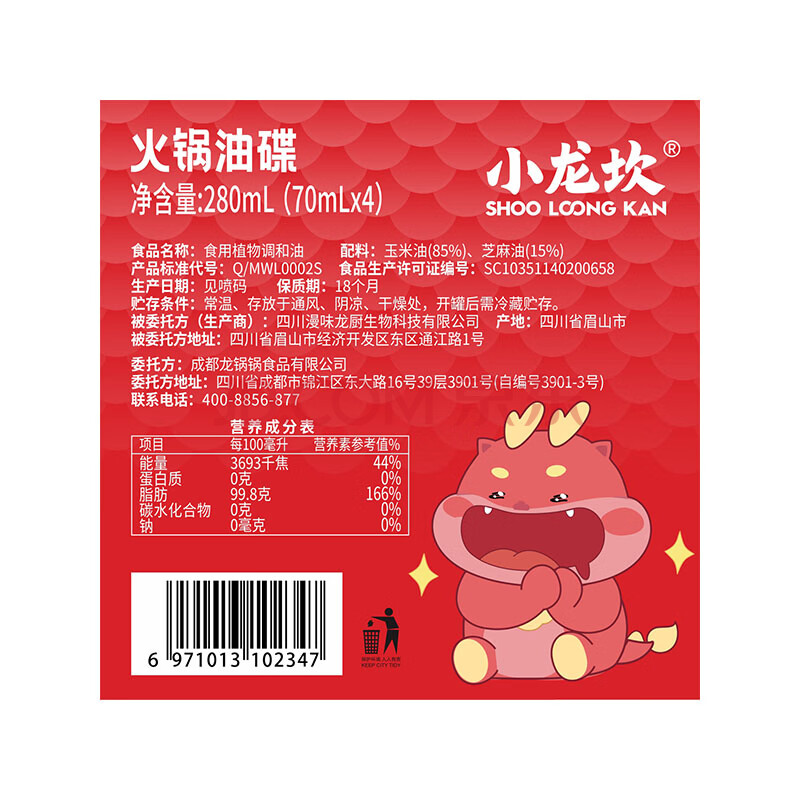 商品相册:小龙坎火锅蘸料70ml*4罐 门店同款火锅油碟特制调和油蘸料第