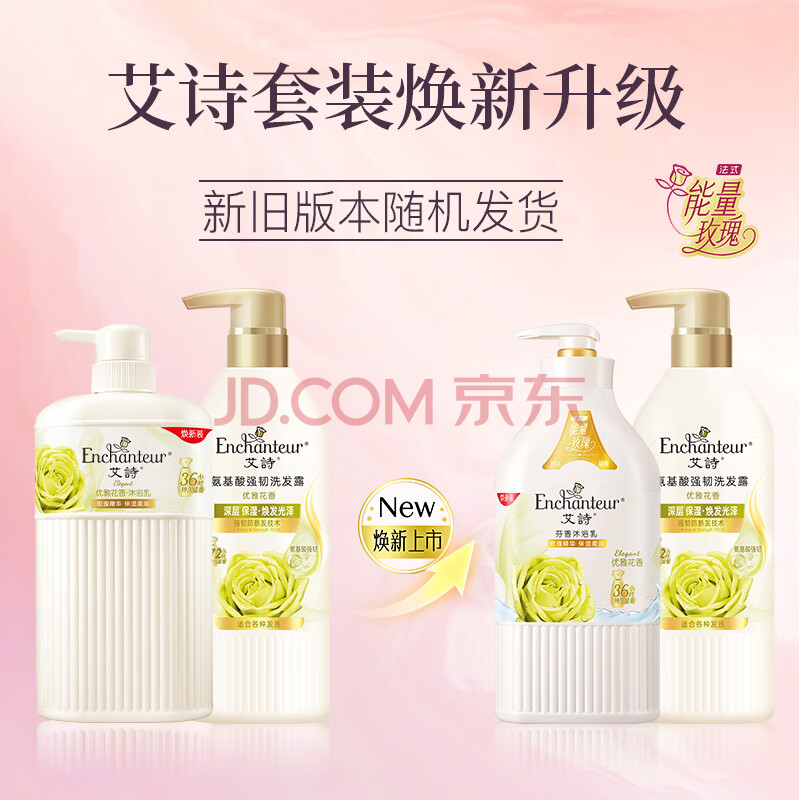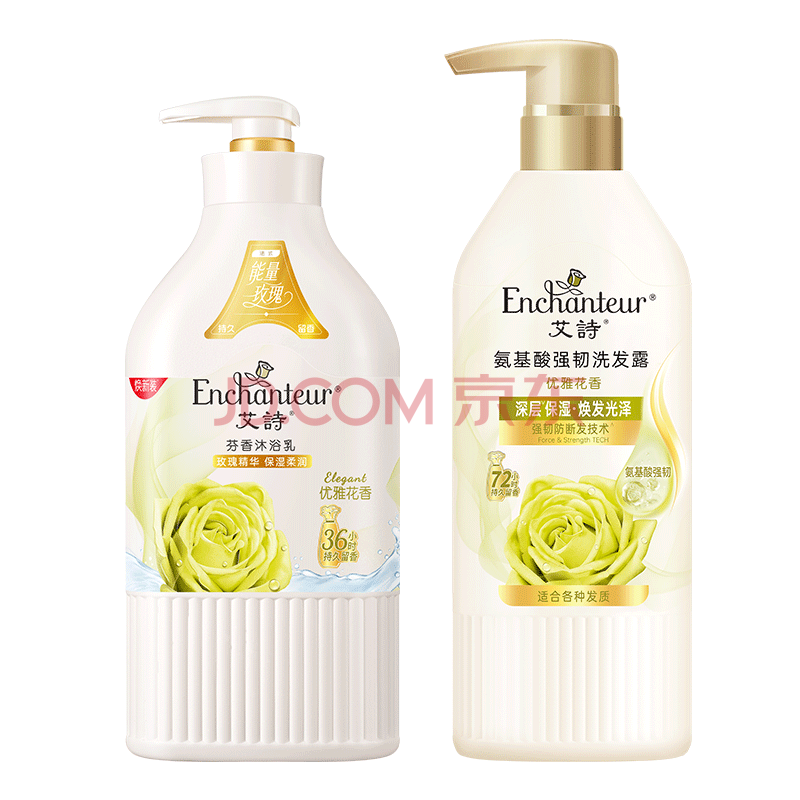 商品相册:艾诗(Enchanteur)洗沐套装香味持久控油蓬松洗发水+优雅茉莉花香氛沐浴露1000g第