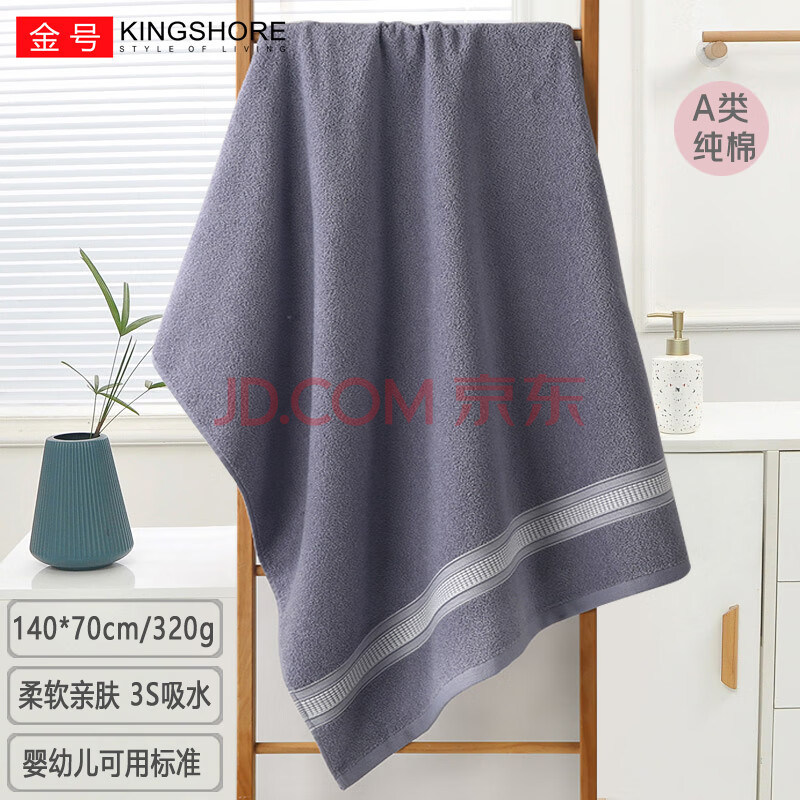 商品相册:金号新疆棉浴巾A类纯棉柔软吸水情侣洗澡巾 单条装140*72cm 320g 灰色第