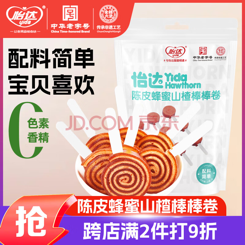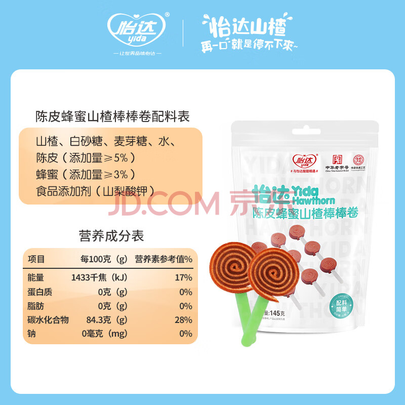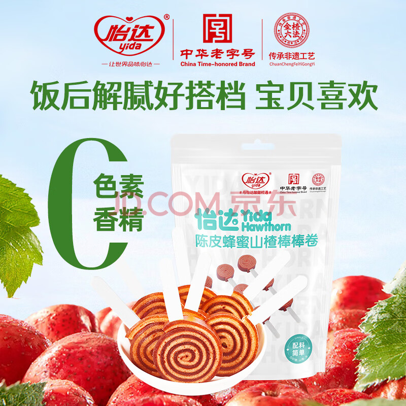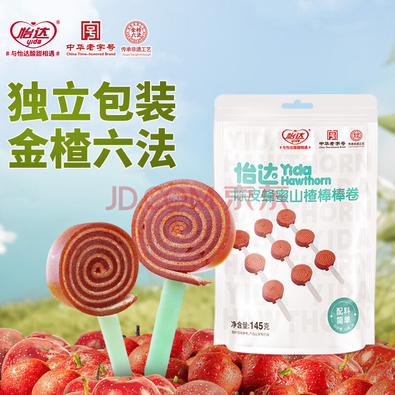 商品相册:怡达陈皮蜂蜜山楂棒棒卷145g8支装 山楂卷棒棒糖蜜饯果干儿童零食第