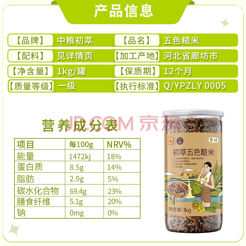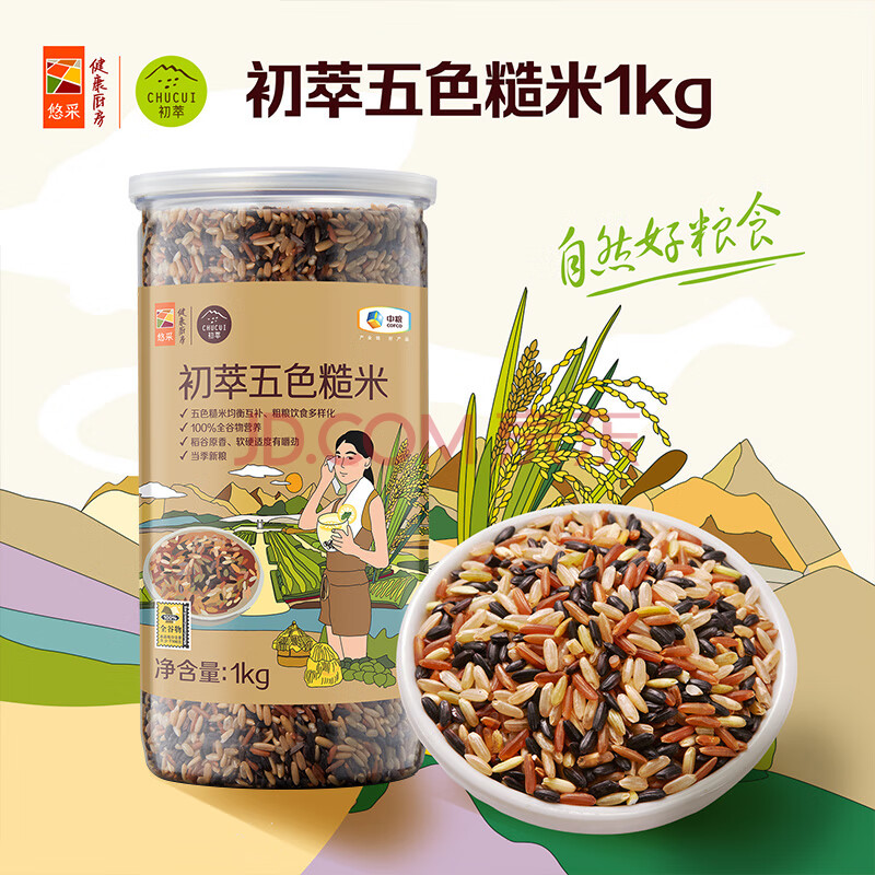 商品相册:初萃 中粮全谷物五色糙米2斤(燕麦米 紫米 黑米 红米 糙米)粗粮主食第
