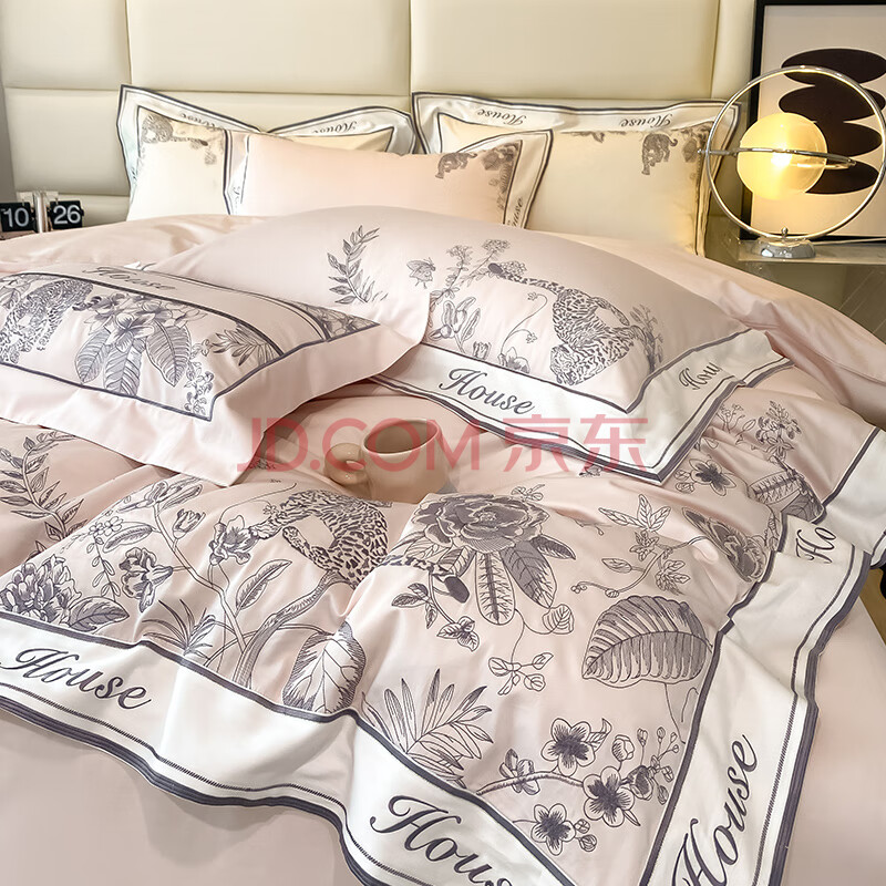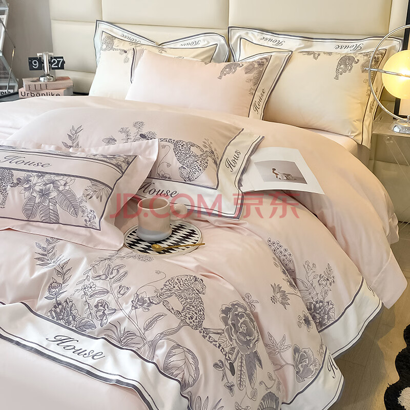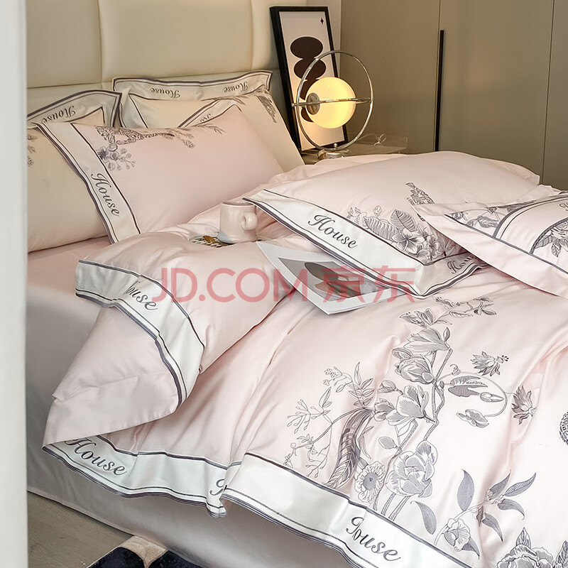 商品相册:Demichel 140支刺绣长绒棉四件套纯棉 法式高端轻奢全棉床上被套床单 1.8/2米床 肉桂粉第