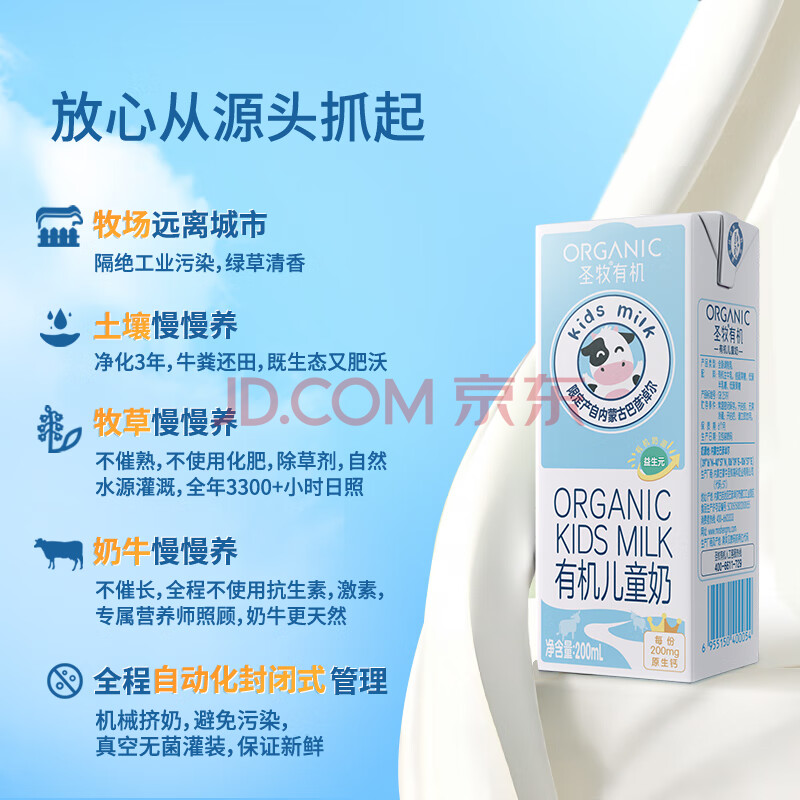 商品相册:圣牧有机 儿童奶200ml*12盒 有机生牛乳 益生元配方 早餐奶 11月日期第