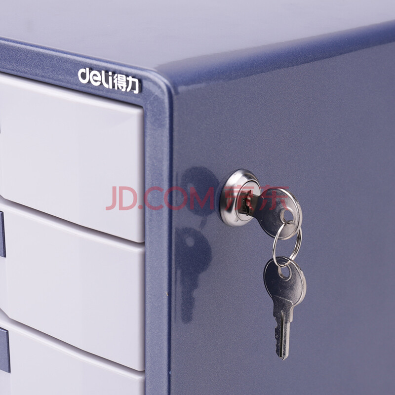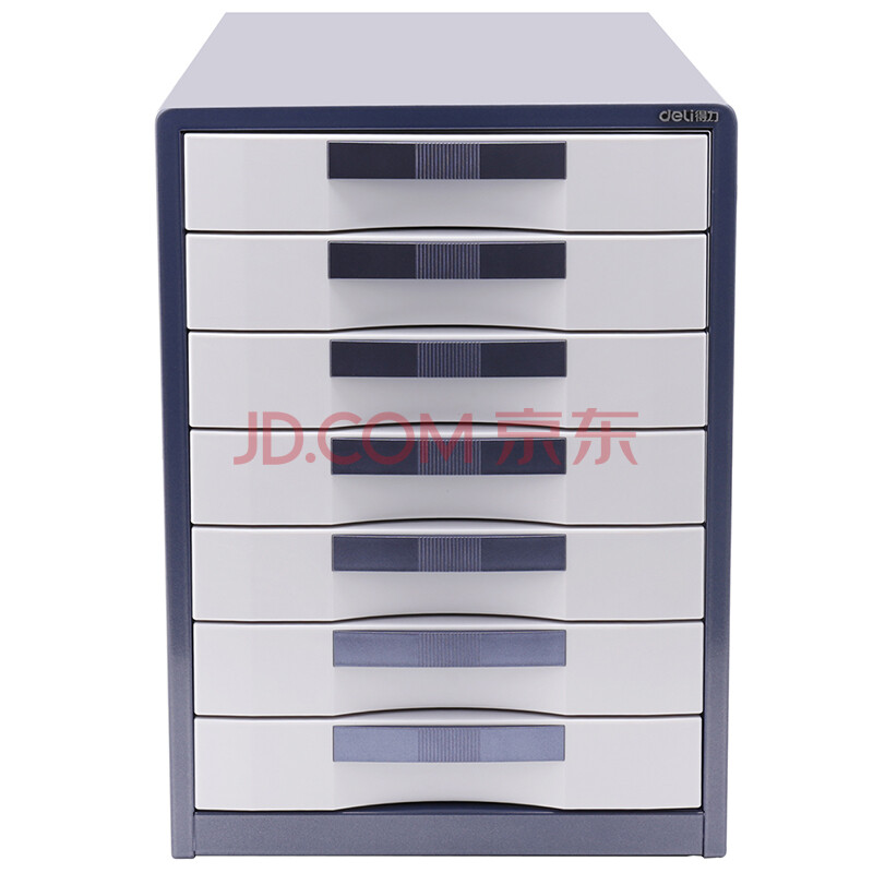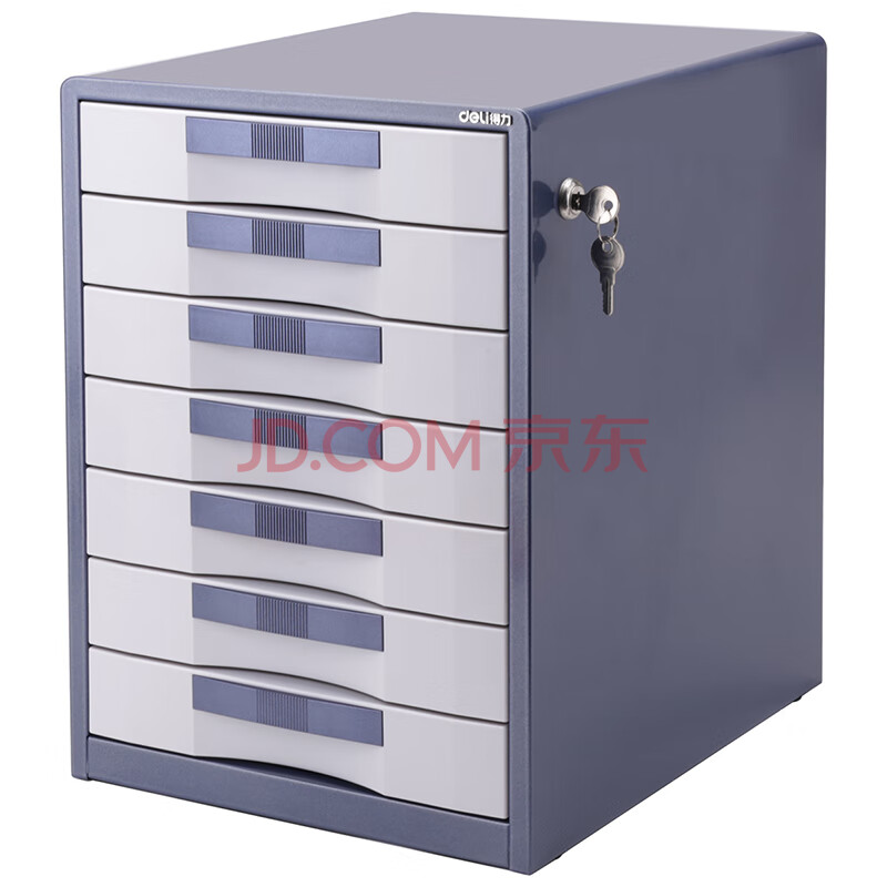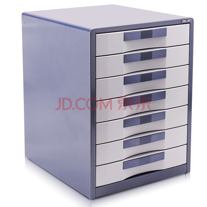 商品相册:得力(deli)9703七层金属外壳文件柜(闪银蓝)1只带锁金属桌面文件柜 带索引标签抽屉资料收纳柜 办公用品第