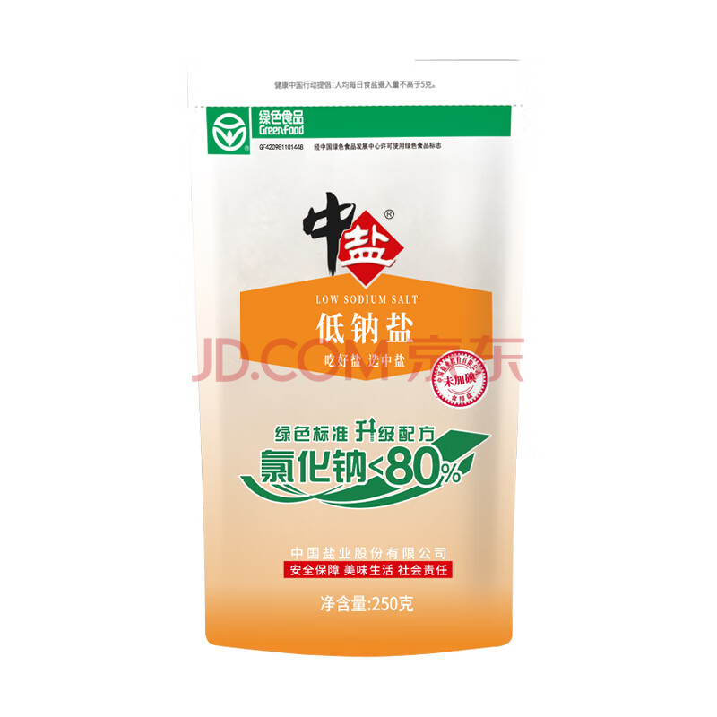 商品相册:中盐 低钠盐250g*5【 未加碘 低钠 绿色食品】 家用调料 食盐调味品 第