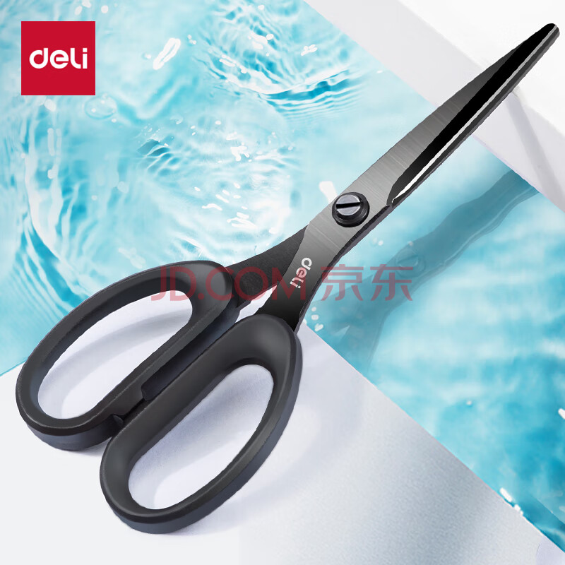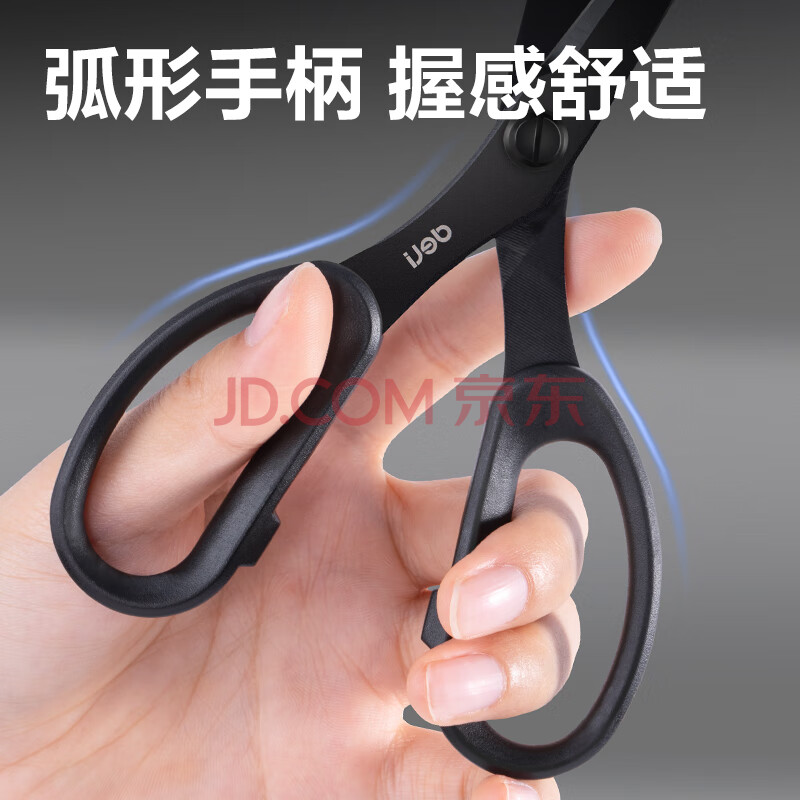 商品相册:得力(deli)【超级爆款】175mm人机造型剪刀 黑刃防锈 家用生活剪子 学生剪纸刀 办公用品 黑77790第