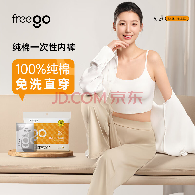 商品相册:Freego一次性内裤纯棉旅行卫生产妇免洗全棉短裤 5条独立装 女士白色L码第