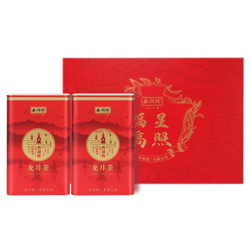 商品相册:西湖牌绿茶龙井茶叶雨前醇香100g礼盒年货送礼品送人长辈第