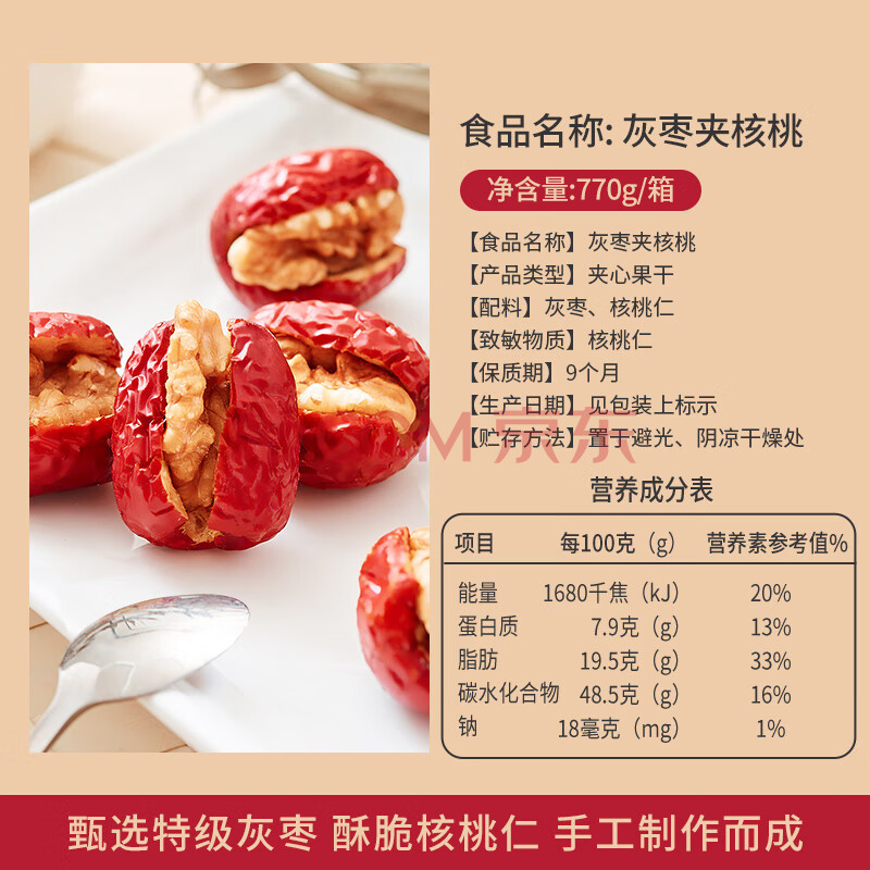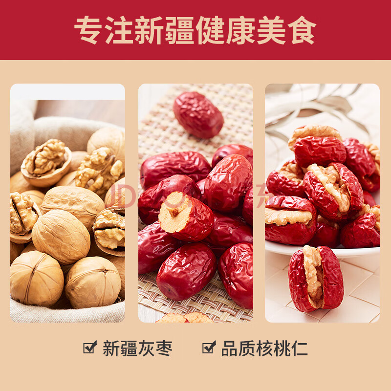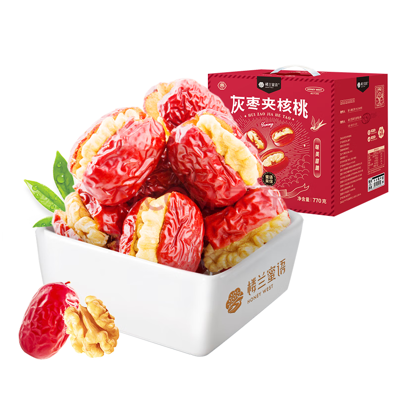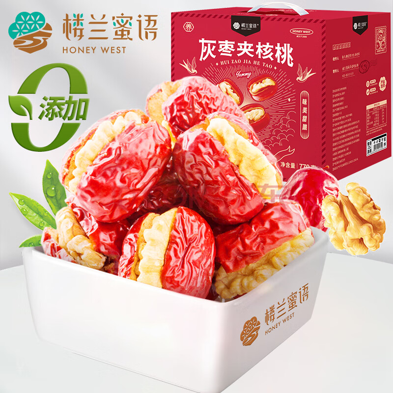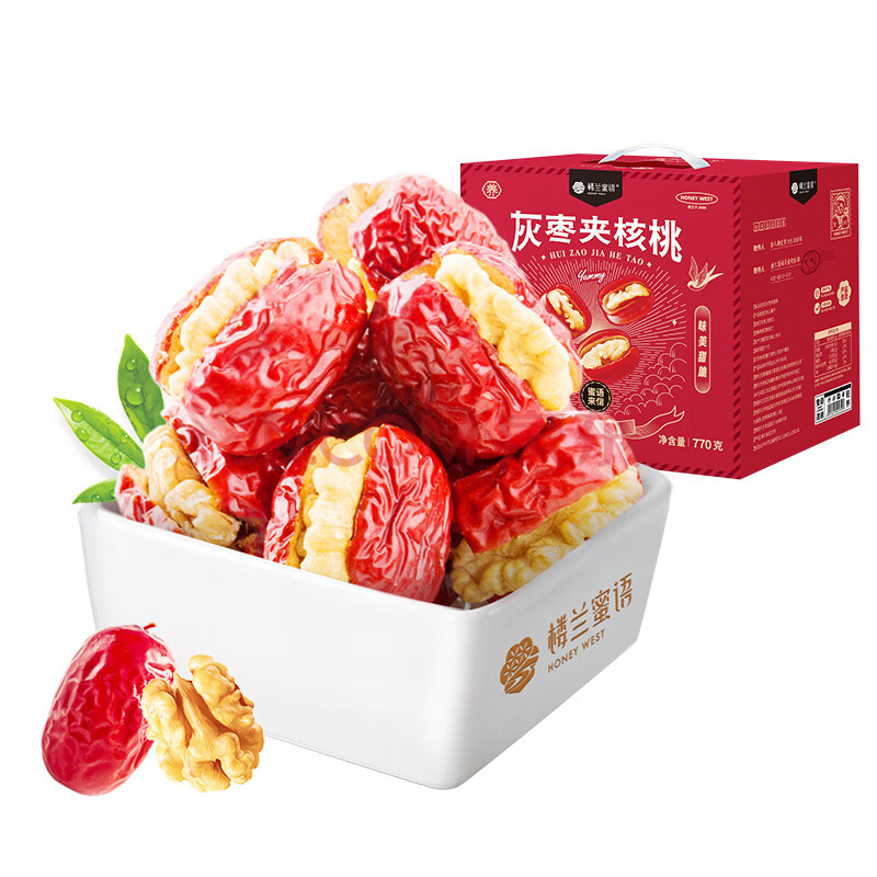 商品相册:楼兰蜜语灰枣夹核桃770g/盒110颗 节日礼盒新疆灰枣红枣 核桃枣夹核桃第