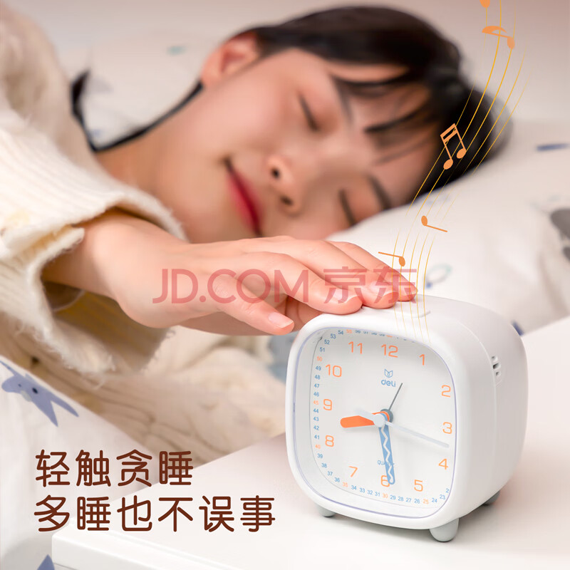商品相册:得力迷你夜光指针式闹钟 家庭卧室懒人闹钟学生闹钟 白8857开学开学季新年礼物第