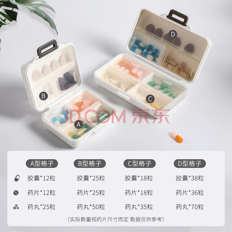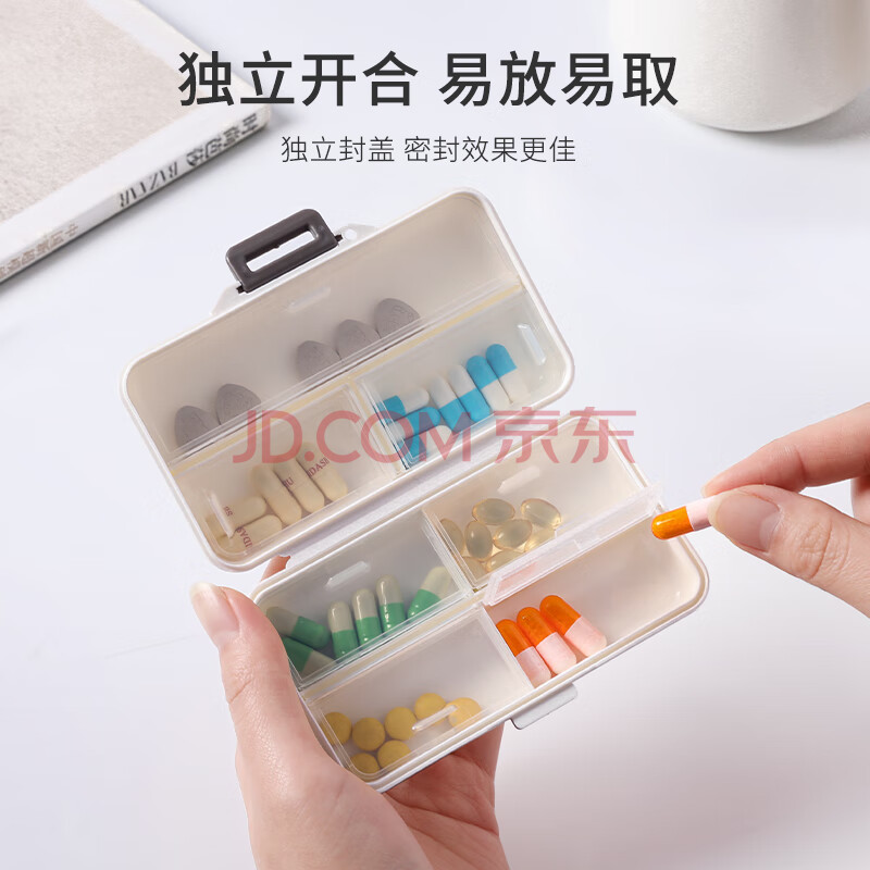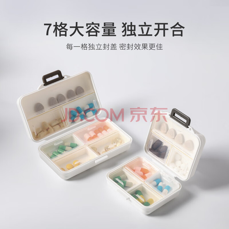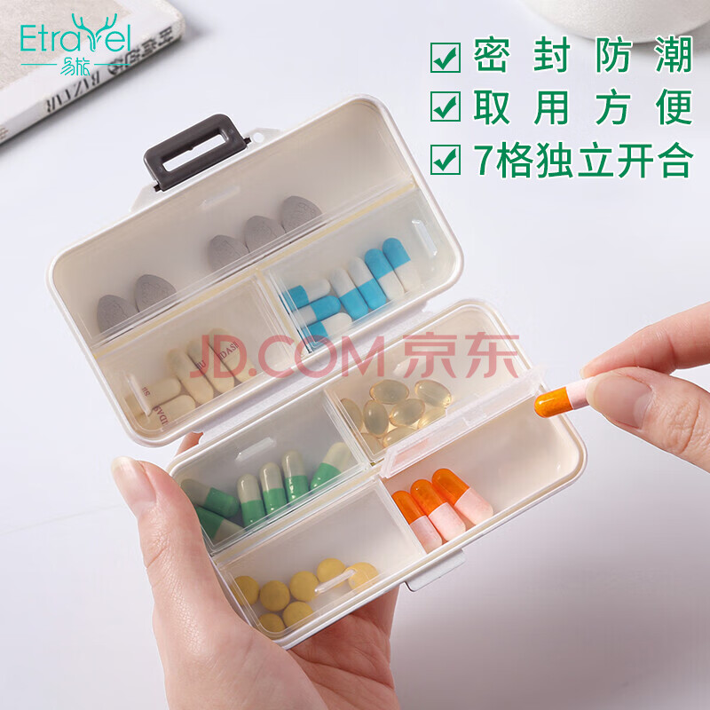 商品相册:易旅 便携药盒分装随身大容量药盒子药片首饰盒7天加大7格长方形药盒第
