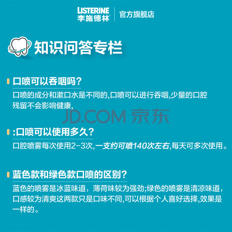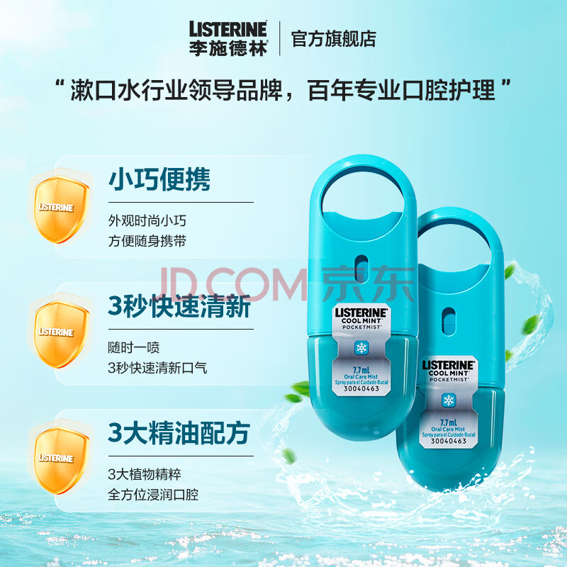 商品相册:李施德林 (Listerine) 口喷冰蓝便携口气7.7mL*2支长效口气清新剂清嗓舒喉第