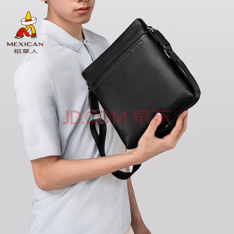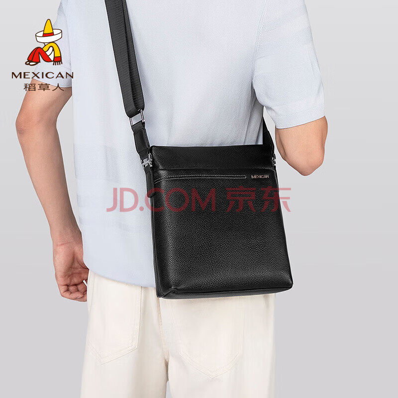 商品相册:稻草人男士单肩斜挎真头层牛皮通勤休闲挂包商务时尚出差轻便大容量第
