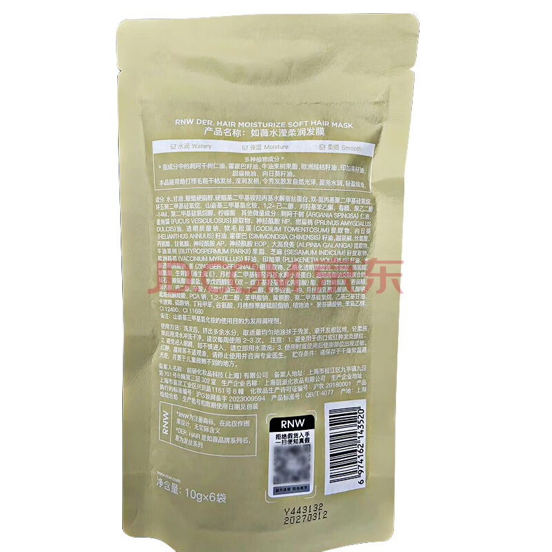 商品相册:如薇(RNW)水滢柔润发膜10gx6袋护发精华神经酰胺修护干枯毛躁受损柔顺发丝第